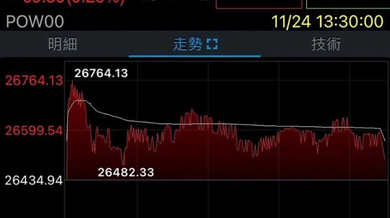 美國聯準會(Fed)利率決策動向不明,台股今(24)日隨著國際股市反彈,早盤一度漲逾300點收復季線,但權值龍頭台積電表現疲軟,拖累指數回吐大半漲幅,受到MSCI季度調整影響,台股最後一盤爆出2855.66億元,終場上漲69.3點或0.26%,收在26504.24點,成交值以7130.1億元刷新今年單日最大量紀錄。